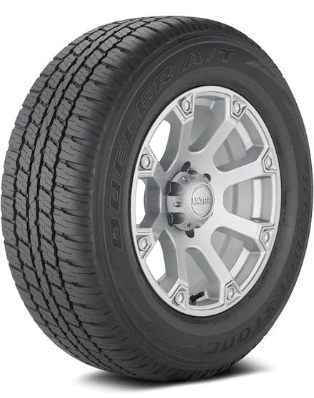 Bridgestone Dueler A/T 693 III 285/60R18 116V OVERVIEW Bridgestone’s Dueler A/T 693 III all terrain tire is built for use on Jeeps, light trucks, and SUVs. Used as Original Equipment on select vehicles, the Dueler A/T 693 III features an aggressive tread design for strong traction and performance on and off road. Load Range: SL Product May Vary From Picture Wheel/Rim Not Included Specifications Features Size: 285/60R18 Tire Size 285/60R18 Vehicle Type Light Truck Tire Width 285 Wheel Diameter 18 Tire Season All-Season Tire Speed Rating V Tire Type Passenger Car Tires, Performance Tires Tire Load Index 116 Uniform Tire Quality Grade (UTQG) 320 B A Tire Treadwear Rating 320 Tread Depth 11/32 Brand Bridgestone Assembled Product Weight 42.99 lb Model Dueler A/T 693 III 004868 Manufacturer Part Number 4868 Manufacturer Bridgestone Assembled Product Dimensions (L x W x H) 31.40 x 11.20 x 31.40 Inches