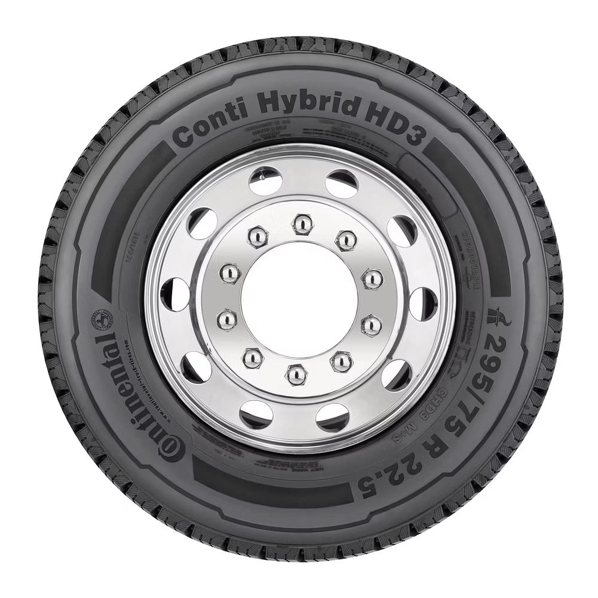 The Continental Conti Hybrid HD3 long haul/regional drive tire. The directional tread design with regenerating sipe technology delivers excellent traction in tandem axle fitment. The fuel efficient tread compound offers excellent rolling resistance balanced with long miles. The optimized contour and balanced footprint distribution provide further extended tread life and optimized wear performance. Build on the Conti 3G casing for maximum re-treadability. Exceptional handling wet and dry Highway Performance and Sports like handling Sport Performance Keep tabs on your tread life Find peace on the road