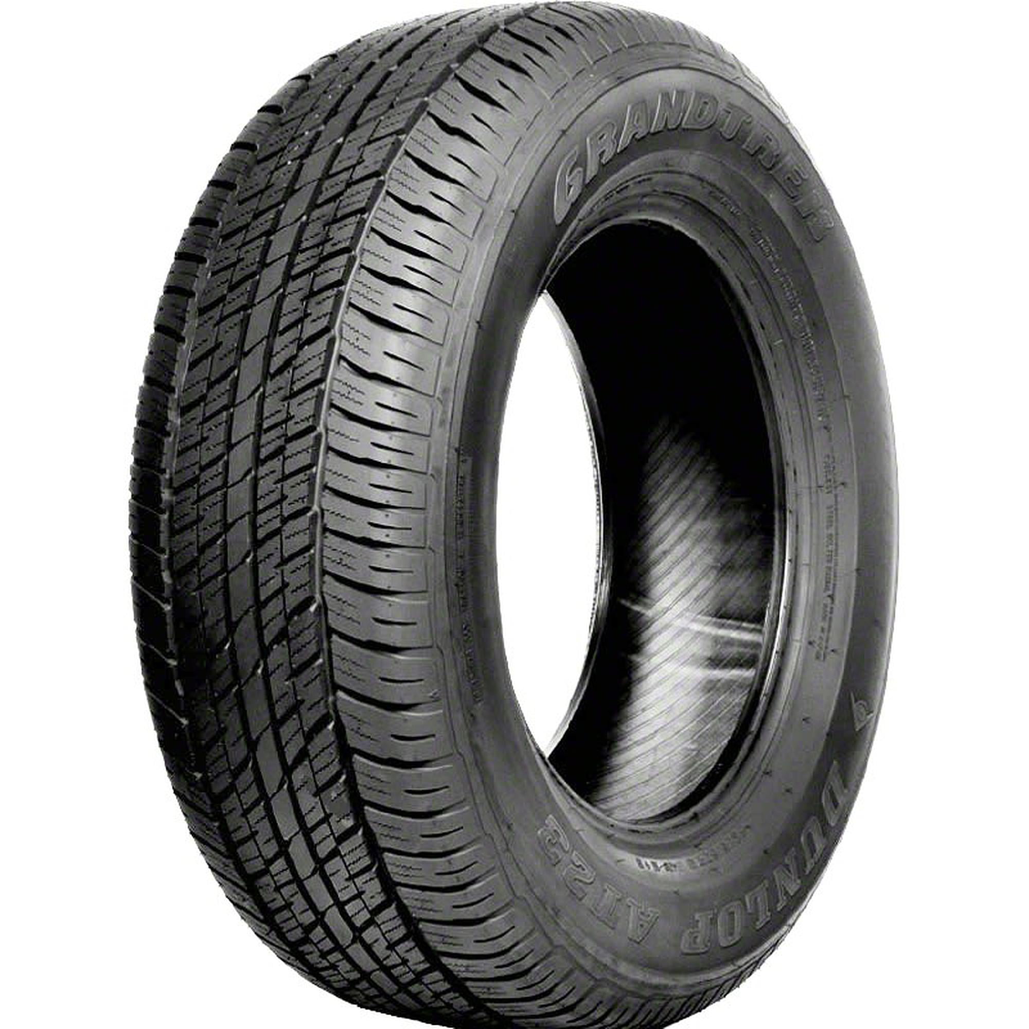 Dunlop Grandtrek AT23 FEATURES AND BENEFITS Enhanced controllability Upgraded load durability All weather traction High driving comfort levels OVERVIEW The Dunlop Grandtrek AT23 is a highway terrain, all season tire manufactured for SUVs. The tire ensures first-rate controllability. The symmetric tread design and the flat footprint work together to keep the tires contact with the road surface at all times. The maintained road contact upgrades the steering responsiveness and the driving stability. This increases the steering response time and accuracy during the drive, while the structure is secured against the driving pressure affecting it. The optimized shoulder tread pattern enhances the cornering capability. Its siping detail heightens the number of biting edges gripping the road surface during the tires maneuvering, guaranteeing high driving safely levels. The models strengthened internal structure upgrades its load durability. The special twin steel belt construction is reinforced with a polyester cord body. This construction manages to maintain the tires ideal shape under the load and driving pressure. This allows the tire to boost the load carrying and withstanding capability, without the deformation of the ideal tire shape. In this manner, the tire ensures a secure performance and a better load capacity. The tread pattern and all season tire compound improve the all weather traction. The detailed symmetric pattern features a high siping density which upgrades the number of biting edges gripping the road surface in dry, wet and winter weather. The all season tire compound enhances the rubber flexibility in various temperatures, which keeps the tire pliable all year. The circumferential grooves prevent hydroplaning. They disperse water and slush from below the tires footprint, which significantly improves the wet and winter weather performance. The Grandtrek AT23 promotes a comfortable drive. The treads five pitch sequence lowers the road noise levels generated while the tires are in motion. The pitch sequence lowers the road and tread pattern noise by negating the soundwaves with a special sound cancelling frequency, before they can reach the vehicles cabin. The polyester cord body improves the driving comfort by reducing the road vibrations felt by the passengers. This results in a comfortable and quiet driving experience. Size: 265 55R19 Season: All Season Performance: Highway Car Type: Truck/SUV Load Range: SL Product May Vary From Picture Tire Rim Not Included