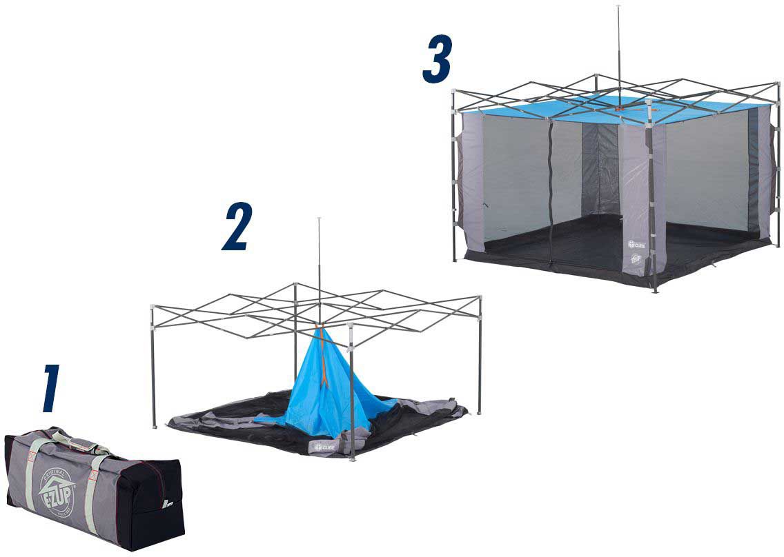 The Screen Cube™ camping accessory fits 5 people comfortably and sets up in seconds by connecting to your angled leg E-Z UP® Instant Shelter® canopy. It’s designed to be 100% bug proof with a fully enclosed insect-proof floor, ceiling, and walls. Stay shaded and insect free!