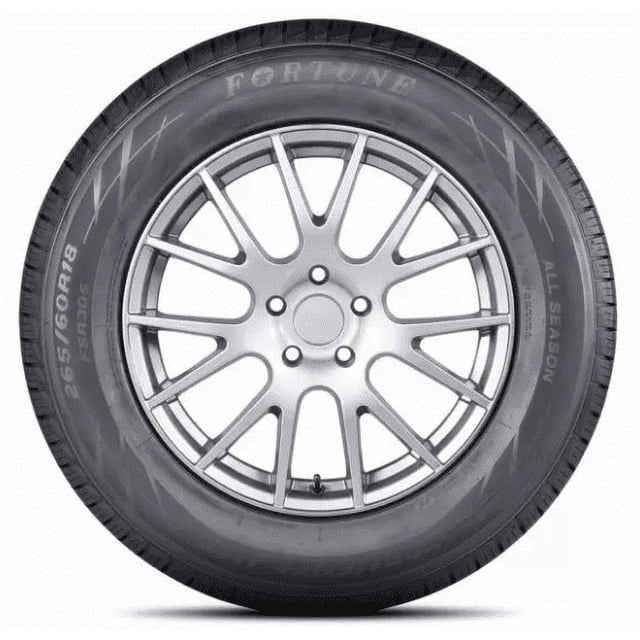 The Fortune Tormenta H/T FSR305 is a highway terrain, all season tire manufactured for SUVs and light trucks. Fortune offers a 45,000 mile treadwear warranty with the light truck sizes and a Black Sidewall with the SUV sizes of this model. The tire guarantees a secure all weather traction. The all season tire and the detailed tread pattern enhance the dry, wet and winter weather grip. The durable Nano-Blend compound optimizes the flexibility of the rubber elements in different temperatures. The tread features a versatile siping pattern which increases the grip on the road surface in all weather conditions with the use of extra biting edges. The tread’s four circumferential grooves further boost the wet traction. The groove placement effectively avoids hydroplaning by dispersing water and slush from the footprint and maintaining the surface contact at all times. The ribbed pattern’s surface contact allows the tire to boost the handling. The ribbed pattern allows the tire to ensure the road contact in order to upgrade the steering responsiveness and the driving stability. In other words, the tire is quick and precise in its response to the driver’s commands, while the structure is secured against the driving pressure. The detailed and versatile siping placement increases the braking power as well. They generate friction at the moment of braking, which greatly decreases the braking distance. This combination ensures the driver’s better control over the vehicle throughout the performance. The ideal tread design and the durable compound increase the length of the usability. The ribbed tread design and the Nano-Blend compound work together to upgrade the tread life length. The tread ensures even pressure circulation, which effectively combats irregular wear across the footprint. On the other hand, the special Nano-Blend compound prevents premature wear, avoids weather and tread damage and prevents irregular wear caused by the tire’s handling. As a result, the tire ensures a longer lasting service life. The Tormenta H/T FSR305 also boosts the comfort levels. The tread design with the Central Dual Pitch pattern decreases the road noise heard by the passengers. The Central Dual Pitch detail negates the sound waves with a special sound-cancelling frequency. In this manner, road disturbances cannot reach the vehicle’s cabin and ruin the passengers’ driving enjoyment. This guarantees a quiet driving experience.