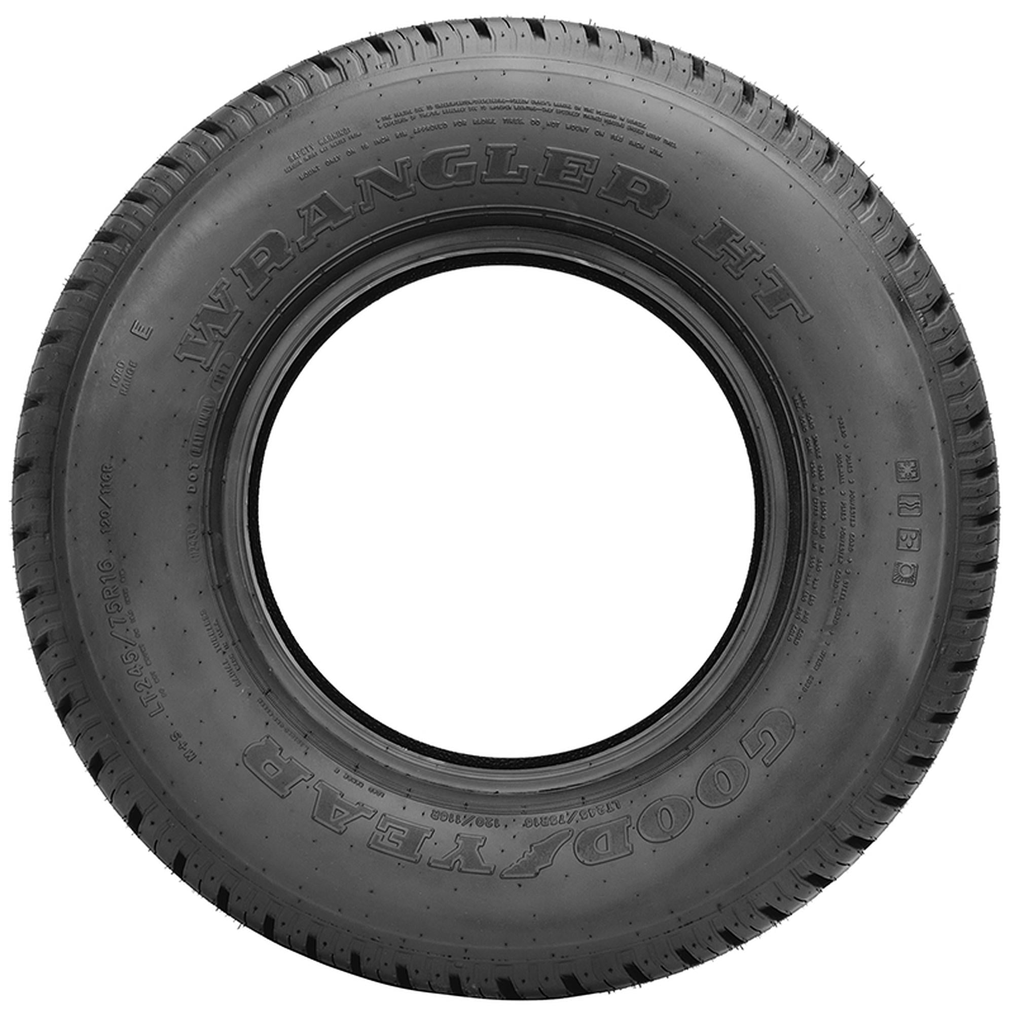 Goodyear Wrangler HT LT215/75R15 106/103Q D BSL TL Specifications Features : Size 215/75R15 Tire Size : 215/75R15 Vehicle Type : SUV/Light Truck Trailer Tire Width : 215 Tire Speed Rating : Q Tire Season : Summer Tread Depth : 14 Millimeters Brand : Goodyear Assembled Product Weight : 32.08 lbs Model : 744154900 Manufacturer Part Number : 744154900 Manufacturer : Goodyear Tire and Rubber Co Assembled Product Dimensions (L x W x H) : 27.70 x 8.46 x 27.70 Inches