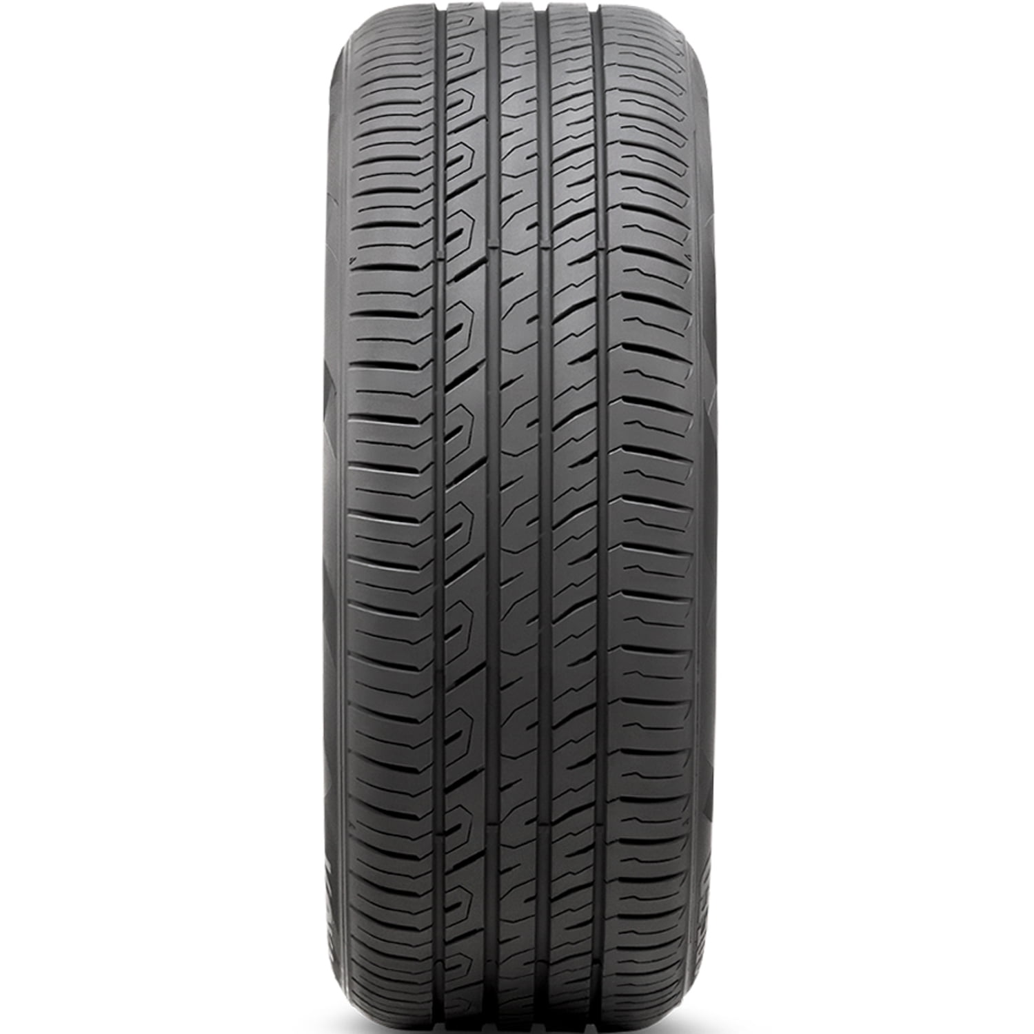 The all season compound and the ideal tread design improve the all weather traction. The stronger compound elements optimize the rubber flexibility in versatile temperatures, increasing the year round performing capability. On the other hand, the tread design with the siping and groove placement firmly grips the road surface in dry, wet and winter situations. The zigzag circumferential and angled lateral grooves combat hydroplaning by dispersing water and slush from the footprint, resulting in a safer wet weather performance.
