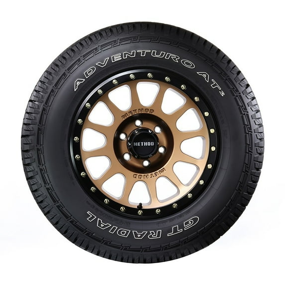 The GT Radial Adventuro AT3 is an all-terrain tire for pickup and SUV drivers wanting aggressive looks and civilized on-road manners. The enhanced tread compound and dual-purpose tread design provides excellent handling, wet grip and a comfortable ride and is backed by a 50,000 mile tread life warranty. Superb off-road capabilities are maintained with features that provide stability and grip on soft and loose surfaces as well as a self-cleaning tread design.