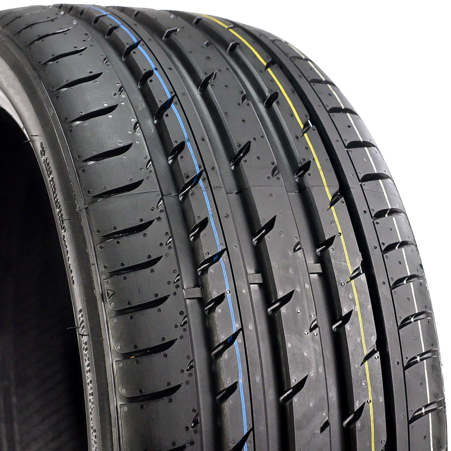 Summer weather traction is guaranteed with the tread design and the summer compound. The durable compound elements allow the tire to improve rubber flexibility, preventing heat build-up across the footprint. The four circumferential grooves prevent hydroplaning, as they disperse water from the footprint. The tread design and the summer compound allow the tire to greatly upgrade the summer weather performing ability.