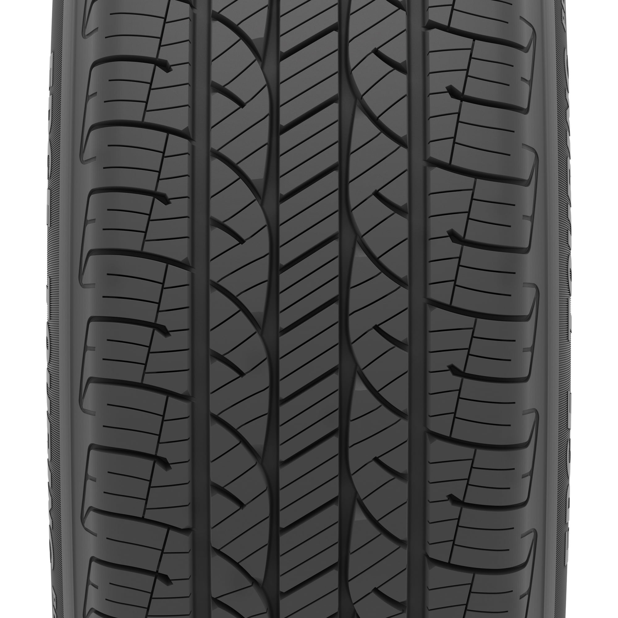 - Silica tread compound and angled tread blocks help improve treadwear