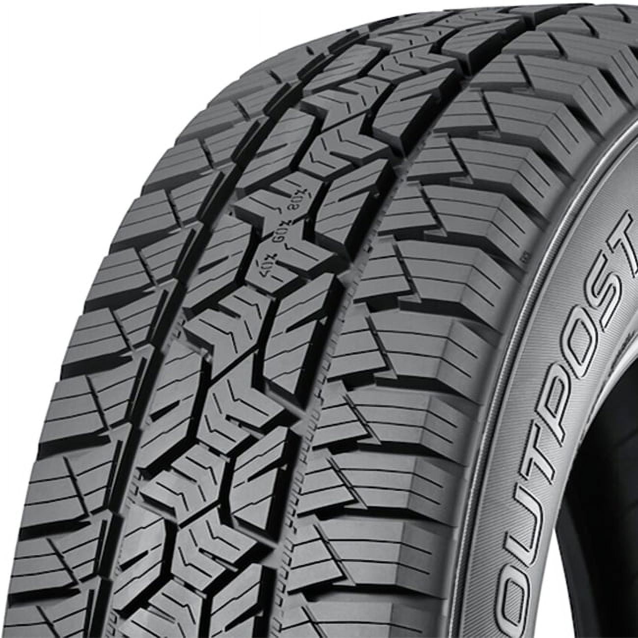 Nokian Outpost APT 255/55R20 110H XL OVERVIEW The Nokian Outpost APT is an all-terrain all-weather tire that’s designed for use on CUVs, SUVs, and light trucks and features Aramid Strong Sidewalls that guard the tire from damage. Three Peak Mountain Snowflake certified for use in moderate to severe winter weather conditions, the Outpost APT’s Torrent Grooves improve grip on soft surfaces such as mud while Double Diamond Lifts provide grip on unpredictable surfaces such as sand and rocks. A dual sidewall design allows drivers to choose the look that’s right for their ride, and the Outpost APT utilizes a low rolling resistance rubber compound that enhances fuel efficiency so that drivers spend less at the pumps and more time on the road and trails. Covered by a 65,000 mile limited manufacture tread life warranty for non-fleet and non-commercial vehicles Three Peak Mountain Snowflake certified for use in moderate to severe winter weather conditions Backed by Nokian’s Pothole Protection Warranty that replaces the tire at no cost if a road hazard damages the tire beyond repair Rubber compound lowers rolling resistance to enhance fuel efficiency Built with double diamond lifts and a deep tread pattern that allow for longer performance Gravel Guards within the tread force rocks, stones, mud, dirt, water, slush, snow, and other unwanted debris out of the tread for consistent traction and to protect the casing from damage Size: 255/55R20 Load Range: XL Product May Vary From Picture Wheel/Rim Not Included info: Specifications Features Size: 255 55R20, Season: All Season, Performance: All Terrain, Car Type: Truck/SUV Tire Size 225/50R17 Vehicle Type CUV Tire Width 255 Wheel Diameter 20 Inches Warranty Distance 65000 miles Tire Season All-Season Tire Speed Rating H Tire Type Passenger Car Tires, Performance Tires Tire Load Index 110 Uniform Tire Quality Grade (UTQG) 700 A A Tire Traction Rating A Tire Treadwear Rating 700 Tread Depth 13/32 Brand Nokian Assembled Product Weight 37.5 lb Model Outpost APT T432127 Manufacturer Part Number T432127 Manufacturer Nokian