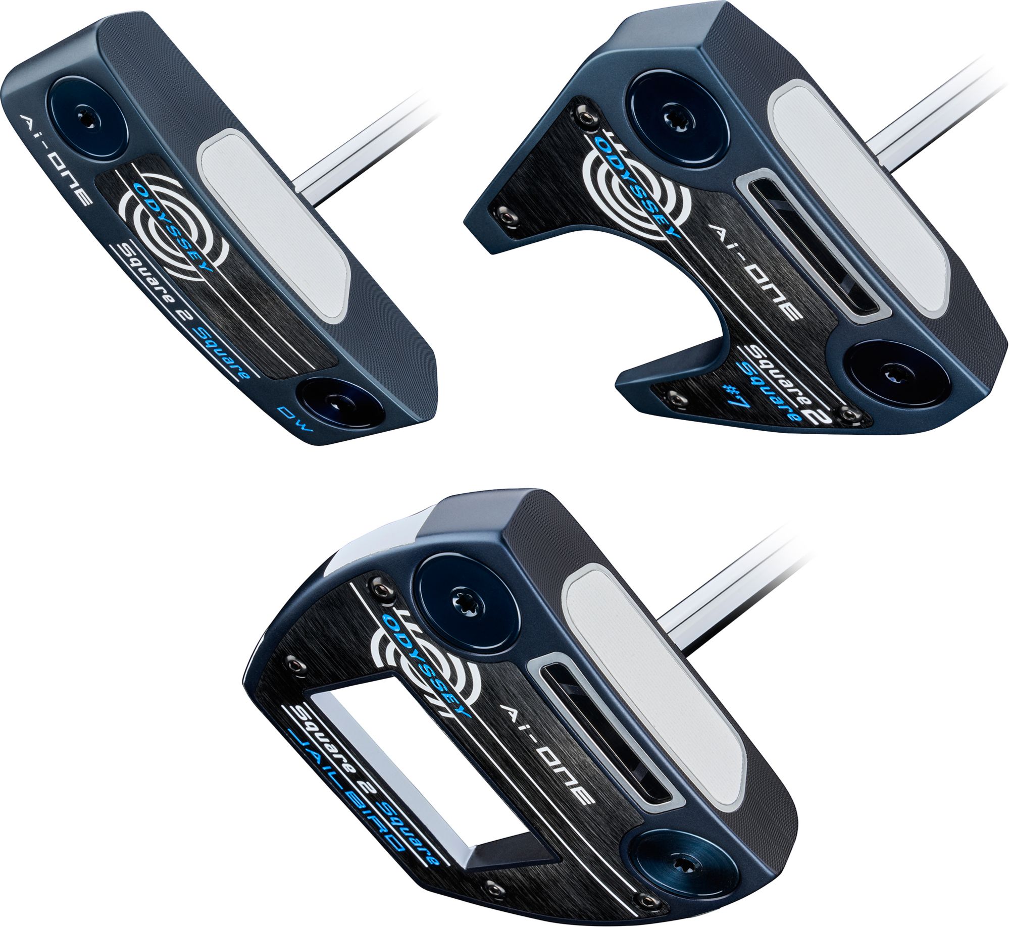- Ai-One Square 2 Square putters features a beautiful navy blue PVD finish that really sets them apart and gives them a premium look and of course the Jailbird models come with Odyssey’s classic Versa alignment.