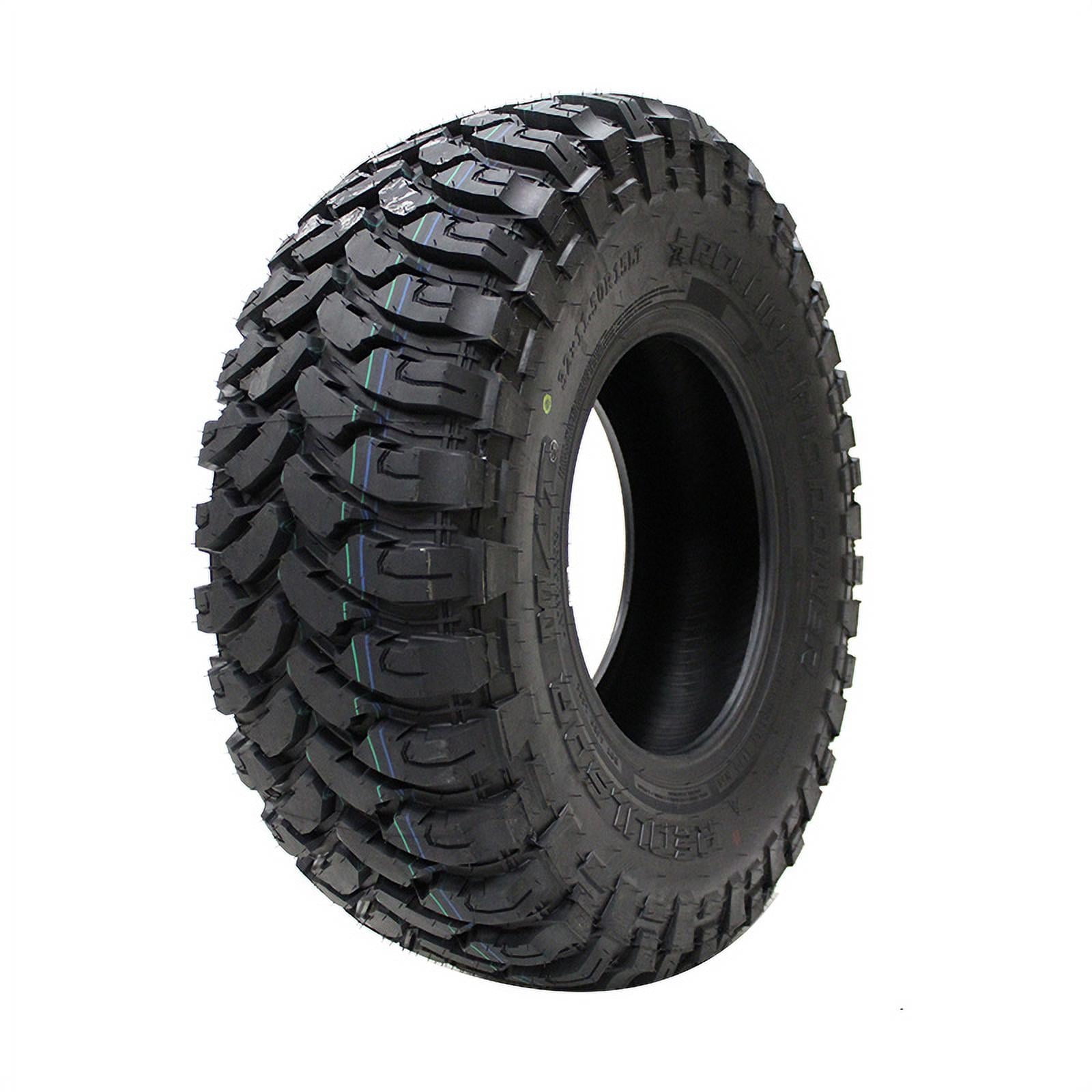 The Rolling Big Power Repulsor M/T has arrived and is ready, willing and able to eat up the Terrain! All out Maximum Traction provides off road drivers the ability to scale Rocky Terrain in addition to just about anything Nature can throw its way! Unsurpassed off road performance in rain, sleet, mud or snow, with its beefed up sidewall and tread protection, this tire also provides minimal noise, a comfortable ride and a price point off road enthusiasts will appreciate. The Rolling Big Power Repulsor M/T’s awesome tread, sidewall & shoulder treatment will set your vehicle apart from the crowd and make a clear statement that you are now destined to rule the road, whatever that road may be. Designed to improve traction to conquer any trails Brings uncompromising strength and wear resistance Delivers unsurpassed road performance in any weather Specifications Tire Size LT40/15.50R24 Vehicle Type Light Truck Tire Width 40 Millimeters Wheel Diameter 24 Tire Season All-Season Tire Speed Rating P Tire Type Light Truck Tires Tire Load Index 128 Tread Depth 16/32 Brand RBP Manufacturer Part Number RBPMT24155010 Manufacturer RBP