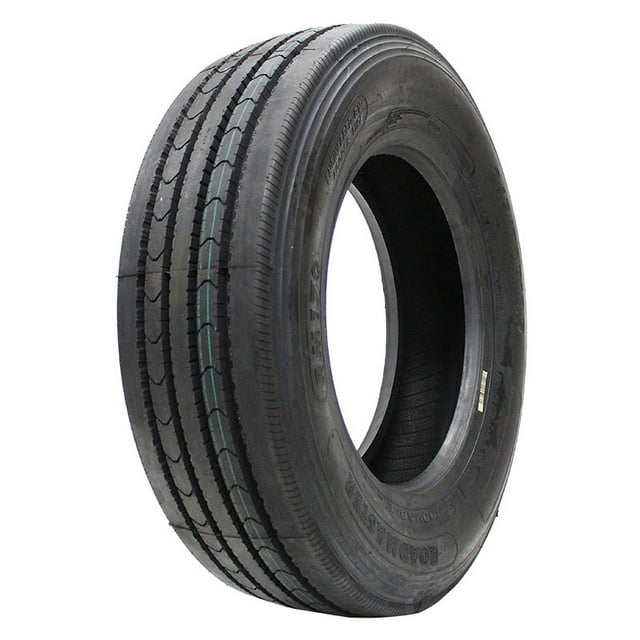 The RM170 is a pick-up and delivery all-position tire and with the addition of the 17.5 inch sizes, it is also ideal for low-platform trailers. The solid shoulder tread design and high tensile strength belt construction combine to provide the retreadability and treadwear that your local hauler requires. It is a good option if you service unpaved lots, or travel even short distances on gravel roads since the V-shaped tread grooves have stone ejectors that kick out rocks. Rocks that stay imbedded in the rubber can eventually drill down to the steel casing ply and cause belt seperation. Roadmaster RM170 245/70R19.5 136/134M Tire: – Wide tread and optimized footprint – V-shaped tread grooves – Stone ejectors info: Specifications Features Size: 225 55R4420 Tire Size 245/70R19.5 Vehicle Type Truck/SUV Tire Width 245 Wheel Diameter 19.5 Inches Tire Season Summer Tire Speed Rating M Tire Type MC, Commercial Tires Tire Load Index 136 Uniform Tire Quality Grade (UTQG) 4963 A A Tire Traction Rating A Tread Depth 16/32 Brand Roadmaster Assembled Product Weight 76 lb Model RM170 Manufacturer Part Number 90000007219 Manufacturer Roadmaster