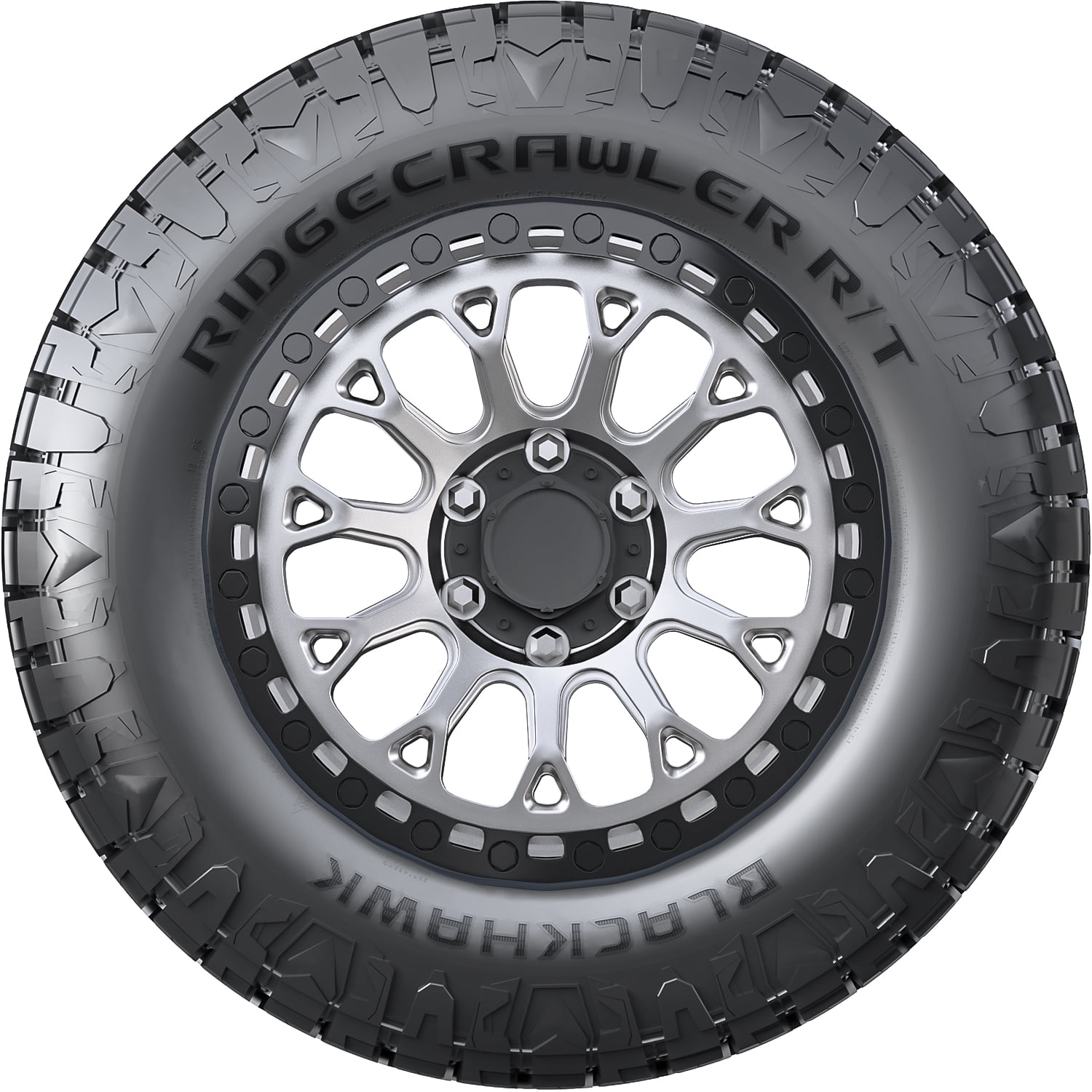 The Blackhawk Ridgecrawler R/T offers a longer-lasting tread life. The ideal tread design evenly spreads out the driving pressure along the tread area, while the wear-resistant compound slows the treadwear rate down. This combination actively prevents irregular and premature wear formations. As a result, the even and reduced wear boosts the tire’s service life and usability.
