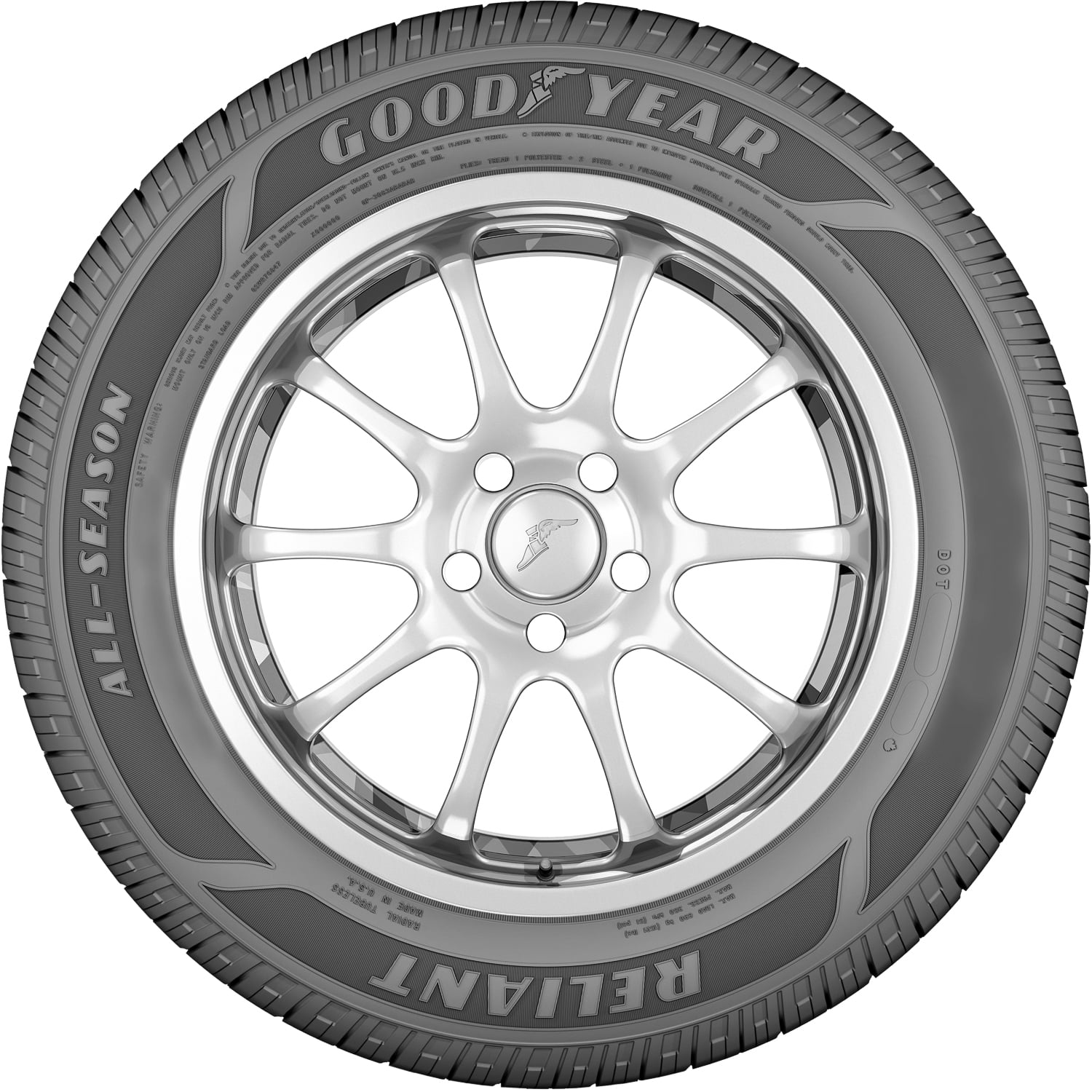 The Goodyear Reliant All-Season is a performance, all season tire made for passenger vehicles and SUVs. This model has some touring sizes as well. Goodyear offers a 65,000 mile treadwear warranty with this model.